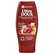 Après-shampooing Ultra Doux à l Huile d Argan réputée pour ses vertus nourrissantes et la Cranberry reconnue pour ses propriétés antioxydantes et protectrices dans une formule crémeuse qui n alourdit pas vos cheveux.