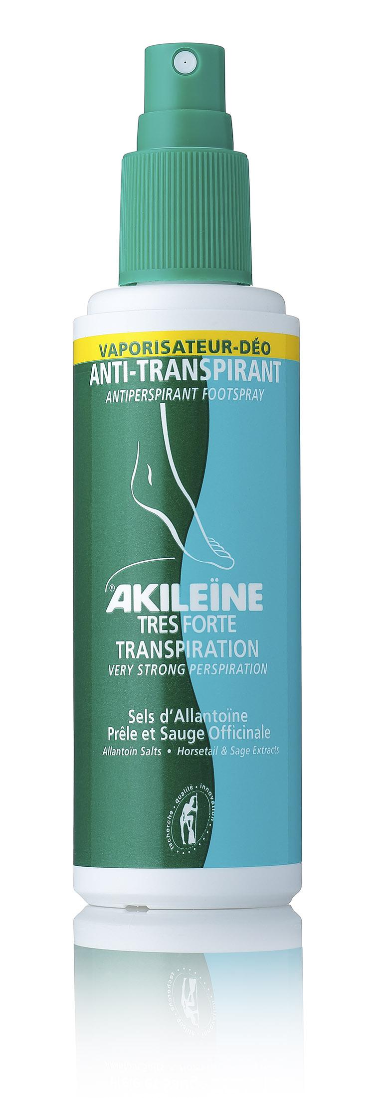 Anti-Transpirant Vaporisateur-Déo Akileïne normalise la transpiration et procure un effet fraîcheur sur le pied.