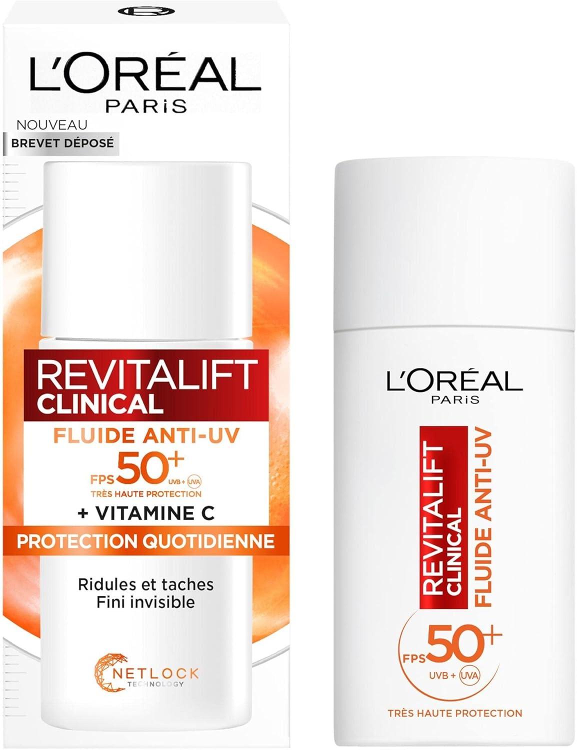 La protection anti-UV associée à la vitamine c protège prévient et améliore visiblement les premiers signes de l åge.Elle améliore l éclat et le grain de peau L OREAL FLUIDE ANTI-UV 50+