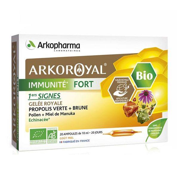 Aide a renforcer le systeme immunitaire et contribue a soutenir les defenses de l organisme. ARKOROYAL IMMUNITE FORT BIO 20 AMPOULES